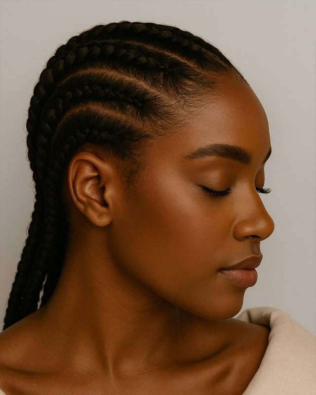 Hair protected, not manipulated low tensions extension cornrows , Tribal & Fulani braids